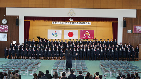 3月18日(水)、2年生が総合的な学習の時間の取組で立志式を行いました。立志式に向けて生徒は自分史でこれまでを振り返り、夢実現シートで将来の夢や目標を具体的に書き出し、それらをもとに思いのこもった立志作文を書きあげました。式では各学級代表の立志作文発表や、実行委員長が代表して行った立志の誓い、学年全体での合唱などから一人ひとりの将来への決意が伝わってきました。 (R8.3.18)