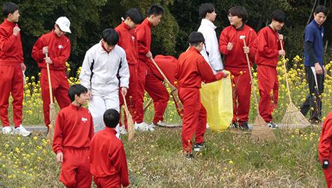 3月16日(月)、生徒会主催による地域貢献活動として草場川清掃ボランティアを実施しました。生徒会三役の呼びかけにより、1年生65名、2年生46名、そして13日に卒業した3年生56名の計167名が参加し、花見シーズンを控えた草場川河川敷のゴミ拾いに取り組みました。この経験が生徒たちの自尊感情の向上につながっていくことを願っています。 (R8.3.16)