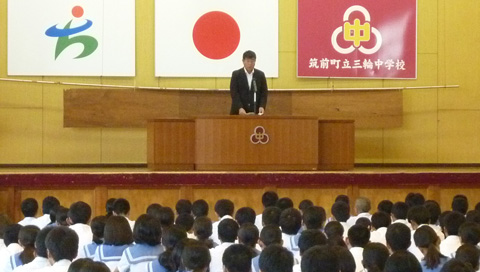 新チームに移行して、初めての大会となる新人大会が行われました。本校では、バスケットボール・男子剣道・女子テニス・男子卓球・野球が優勝に輝きました。9月30日に行われた選手激励集会では、新部長よりテレビモニターを通じて抱負が述べられましたが、凜とした表情には努力の跡があらわれていました。これからも三輪中生の活躍にご期待ください。
