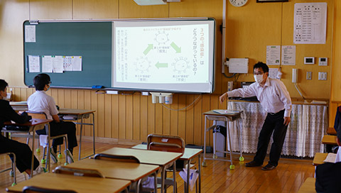 5月19日(火)、新型コロナウィルス感染症対策による休業措置を経て、学校再会に向けた段階的措置として、分散登校がスタートしました。子どもたちは久しぶりの学校に心を躍らせ、仲間との再会を喜びました。また、感染症には「病気」「不安」「差別」の3つの顔があり、負のスパイラルとしてさらなる感染の拡大につながる怖さについて学びました。