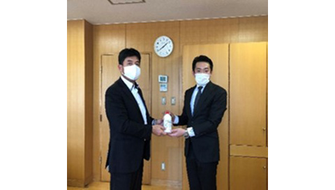 株式会社「アシスト」代表取締役の一関太佳史様(平成18年度卒)より、消毒液500mlを15本と、スプレーボトルを寄贈していただきました。話を伺うと、近隣の福祉施設等へも届けているそうです。消毒等物資が不足する今、大変有り難く思うと同時に、社会貢献の精神に、ただただ頭が下がる思いです。