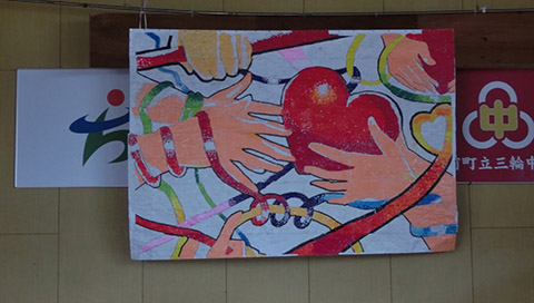 また全校生徒による壁画は、事前に絆に関する生徒アンケートを実施し、回答として集まったエピソードが原画のモチーフとなっています。基本となる原画をもとに、各学級で切り絵をしていきました。子どもの創意工夫のもと、つながりを大切にした活動を継続しています。(2020/10/12)