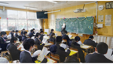 終業式がリモートで行われ、子どもたちは2週間の冬休みに入りました。校長先生からは、民間人として宇宙旅行を行った前澤友作氏が紹介され、「内向きになりがちだった目線を外に向け、少し広い視野でコロナ後の社会や自分の生き方について考えてほしい」と語られました。また、生徒会の退任・任命式が行われました。八巻生徒会長をはじめ、旧役員の皆さんのリーダーシップのもと、記憶に残る素晴らしい取り組みが実現しました。また一歩、自ら考え、行動する三輪中へ近づきました。(2021/12/24)