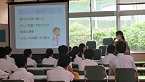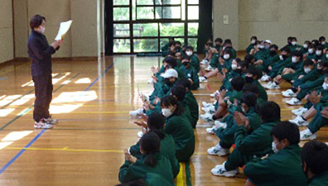 3時間目に熱中症対策教室が行われました。1年生の保健委員の皆さんのおかげで、熱中症の症状や予防措置、発生時の初期対応について学ぶことができました。授業の最後には、たくさんの人が感想を発表してくれました。これからさらに暑い日が続きます。学んだことを活かし、夏休みを元気に過ごしましょう。(R3.07.06)