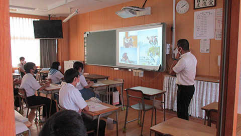 近隣の6つの高校をお招きし、出前授業を6時間受けることができました。3年生は学科の特徴や学習内容を聞いて、期待や夢が広がったことと思います。中体連大会や吹奏楽コンクール等を控えている人もいますが、3年生の夏休みは、進路獲得において重要な時期になります。目標に向かって時間を有効に活用し、こつこつと力をつけてほしいと思います。(R3.07.07)