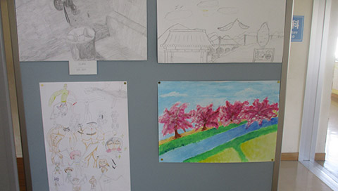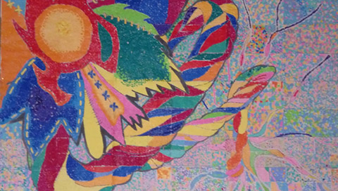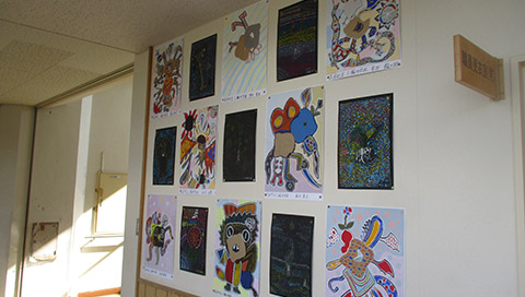 また全校生徒の手によって創られる壁画は、生徒から寄せられたエピソードがモチーフとなっています。今年の壁画は、さまざまな個性や価値観が織りなす力強い花を描いています。 (R3.10.13)