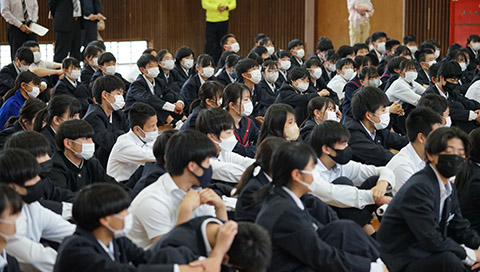 今年度は本校生徒が一同に会した議案審議が行われ、原案に対する質問や意見が繰り広げられました。生徒全体で学校のことを考え、場内は大きな拍手に包まれました。(R05.04.24)