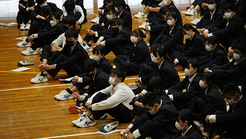 甘木・朝倉消防署西部分署の協力を得て、火災から生徒の安全を確保することを目的とした避難訓練が行われました。火災を想定した避難訓練では、子どもたちは指示を聞き、迅速に避難することができたと思います。災害に対してなお一層の意識を高め、防災への心構えを持ちたいと思います。(R5.6.16)