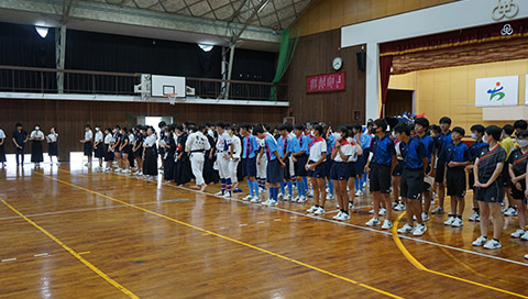 7月1日より、中学校体育連盟主催の朝倉市郡中学校総合体育大会が始まります。3年生にとっては最後の大会です。6月28日の選手激励会では、各部の部長より抱負が述べられ、力強い応援歌で互いの健闘を祈りました。2年3ヶ月という短い期間ではありましたが、部活動を通して多くのことを学んだことでしょう。市郡大会で上位戦線を勝ち抜いた選手たちは、7月開催の筑後地区大会に挑みます。 (R5.7.1-2)