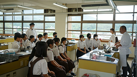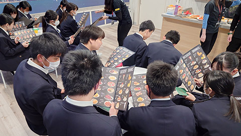 1年生が北九州英語村を訪問しました。1グループを10名程度で構成し、レストランやホテルなどで英会話を体験しました。また、フェアトレードやSDGsに関する講話をお聞きしました。日頃の学習の成果を、体験を通じて実感することで、英語に対する興味・関心が高まったことと思います。(R6.2.7)