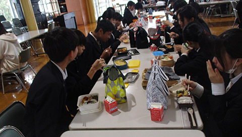 本校では11月20日~30日を食育週間と位置づけ、実践意欲を高める機会としています。今日は、子どもが自分の弁当を作って登校する「弁当の日」。子どもたちは、おにぎりづくり・おかず一品づくり・弁当一箱づくりと、自分の段階に合わせた弁当づくりに挑戦しました。失敗の経験を経て、感謝の心を知り、生きる力を身に付けてほしいと願っています(R5.11.24)