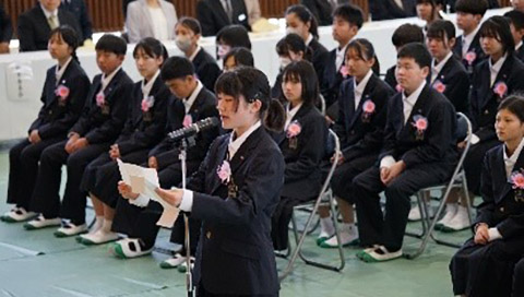 4月10日、第78回入学式が執り行われました。116名の新入生のみなさん、入学おめでとうございます。凛とした表情が印象的で、ハツラツとした姿を見せてくれました。校長先生からは、「自分や周りを大切にすること」「自ら学ぶことを大切にすること」「挨拶と掃除を大切にすること」の3つの願いが贈られました。 (R6.4.10)