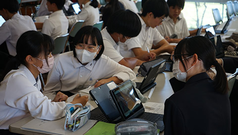 11日は「絆の日」の取り組みが行われました。毎年、生徒会役員が工夫を凝らし、友情、信頼などをテーマに全校生徒で考えていきます。本年度は、「クレヨンしんちゃん」を題材に、生徒会役員がゼロから創ったまさに道徳の授業でした。また、一人一人がタブレットを用いたことも初めての取り組みでした。(R6.10.11)