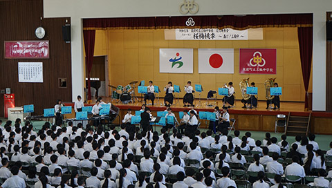 6月25日、中体連夏季大会等に向けての激励会がありました。大会当日は、磨かれた技、鍛えられた体力以外にも、各部でこだわり、大切にしてきた「協調性、礼儀、勤勉さ、感謝など」、「心」の面でもかっこいい姿を見せてくれることを期待しています。 (R6.6.25)