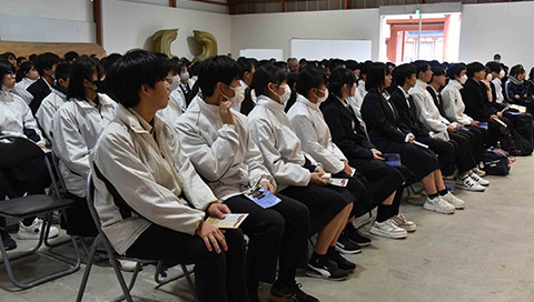 令和5~7年度まで県の指定事業を受け、授業改善を中心に取り組んでいます。6日には、約100名を超える先生方にお越しいただきました。本年度は、授業整理会への生徒参加、全学年共通のデジタル掲示板を用いた振り返り活動、ペア座席等の取組を行いました。