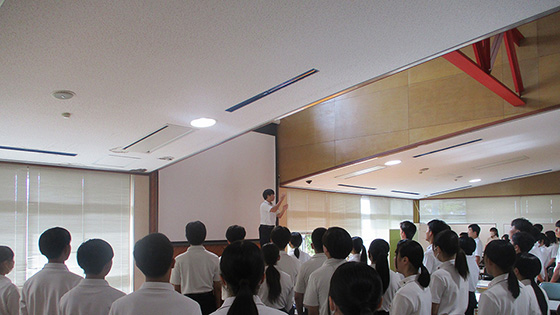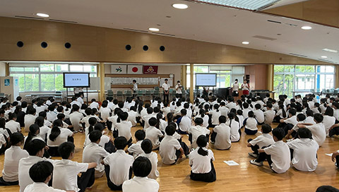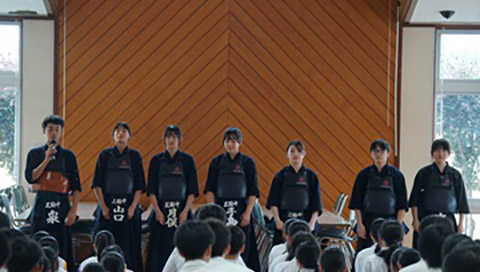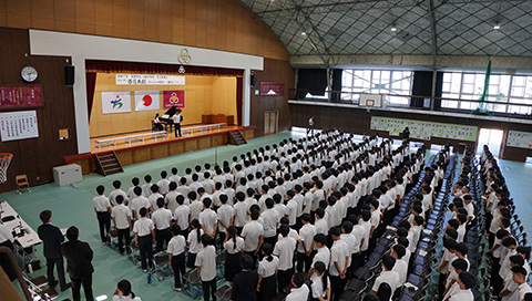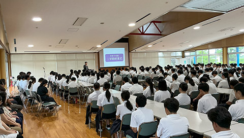 9月1日に2学期始業式が執り行われました。夏休みに行われた大会等の報告があり、代表して弓道部が表彰されました。また、始業式後の生徒集会では、生徒会長からの話をはじめ、多くの委員会から全校生徒に向けて活動の提案が行われました。2学期も生徒主体の学校づくりを目指します。 (R7.9.1)