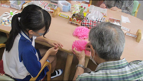 9月10日(水)に3・4組、11日(木)に1・2組が福祉体験学習を行いました。風船バレーや〇×クイズなどをして、施設の利用者の方々や職員の方と大いに盛り上がり、生徒の皆さんが考えを深めながら交流しているのが伝わってきました。生徒の感想には、「ベッドを使った体験を通して、移動させるときの摩擦を少しでも減らそうと、グローブなどといった道具を使って工夫していることに驚きました。この体験を通して、福祉は自分の身近にあることを学びました。普段の生活では、体験を生かし、困っている人がいたら声をかけようと思います。」という声がありました。 (R7.9.10,11)