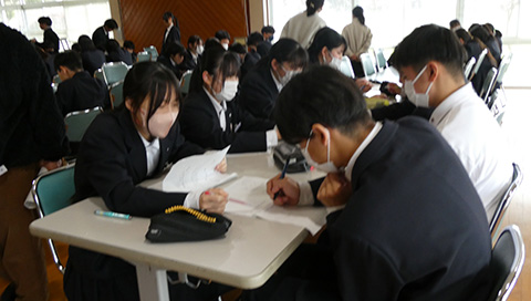 1年生が総合的な学習の時間の活動でキャリア教育を行いました。エンカウンターなどを交えながら「働く」ことについて真剣に学ぶ様子がありました。3月5日(金)には、9つの事業所から講師の方々をお招きし、職業人講話を行いました。「販売・営業」や「医療・看護・保健」などの職種から生徒が参加したい講話を選択し、生き生きとした表情で主体的に講話を聞く姿が多く見られました。 (R8.3.7)